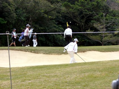 ティグラウンドからセカンド地点まではそれ程問題なくこなすことができますが、全員が集まってくるグリーン上では次に誰がどこから打つのか、そして今自分がすべきことは何かを考えます。 一番この状況で考えることが多いパターンは、自分の選手がガードバンカー(グリーンまわりのバンカー)から打つ時です。キャディは選手が打った後にパターを渡し、バンカーをならします。ツアーのバンカーのならし方は特別丁寧で、ならすのに時間がかかります。 そのため、次に打つ選手が何処にいて、どれ程の時間をかけてアドレスに入るかを知っていなければなりません。それを把握していることで、自分がバンカーをならしきることが出来るのか、その後に自分のプレーヤーのラインを読む時間があるかどうかを考え、場合によっては全員がホールアウトしてからならすということも少なくありません。 2人の選手が同じバンカーから出した場合などはより一層状況判断をしっかりとしなければなりません。 アドレスから打つまで時間がかかる選手の場合、車の見切り発車と一緒で、思わず一歩出てしまう場合がありますが、とにかく何事も焦らずに回りの雰囲気を見ることで、無駄なく仕事をこなすことが出来るようになります。 やはりこれは経験による所が大きいのではないでしょうか。